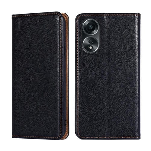Para Oppo A58 4G Estuche de Teléfono de Cuero Magnético de Color Sólido con Aceite Brillante (Negro)