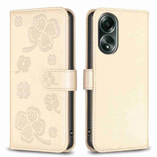 Para Oppo A58 4G Funda de Cuero con Relieve de Cuatro Hojas (Dorado)