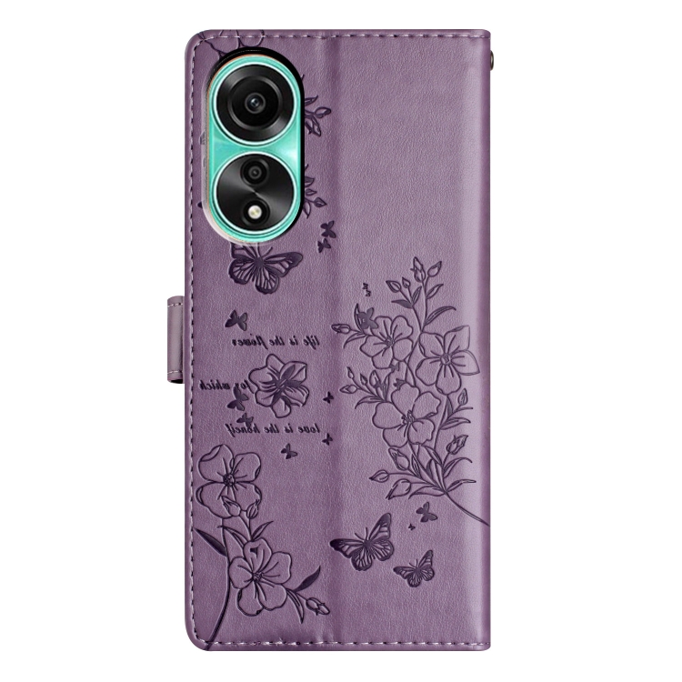Para Oppo A58 4G Global Butterfly Love Flower Funda de Cuero para Teléfono En Relieve (Púrpura)