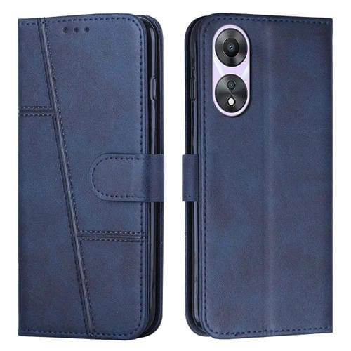 Para Oppo A58 / A78 Funda para Teléfono de Cuero con Hebilla y Textura de Becerro con Costura (Azul)