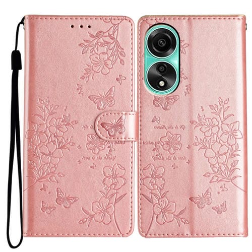 Para Oppo A78 4G Butterfly Love Flower Funda de Cuero para Teléfono En Relieve (Oro Rosa)