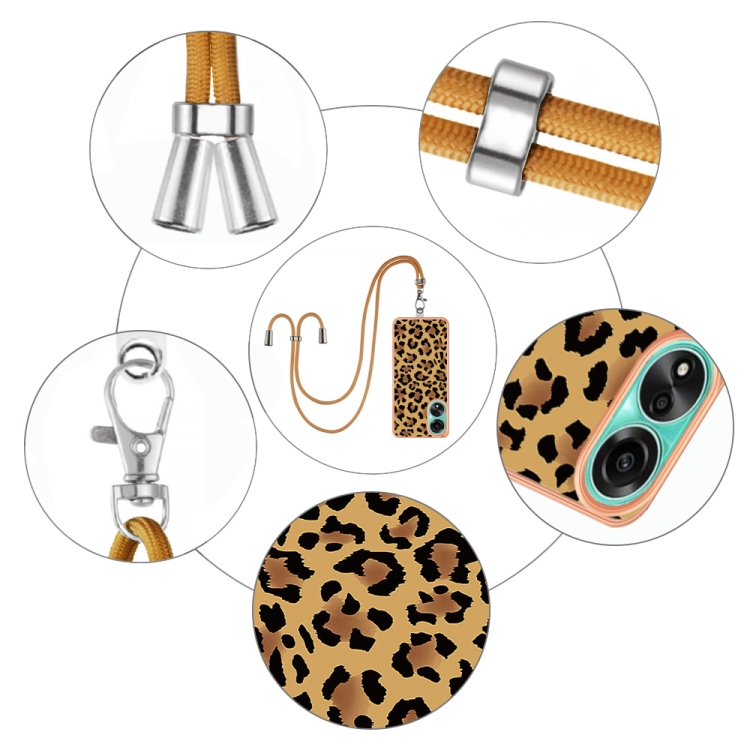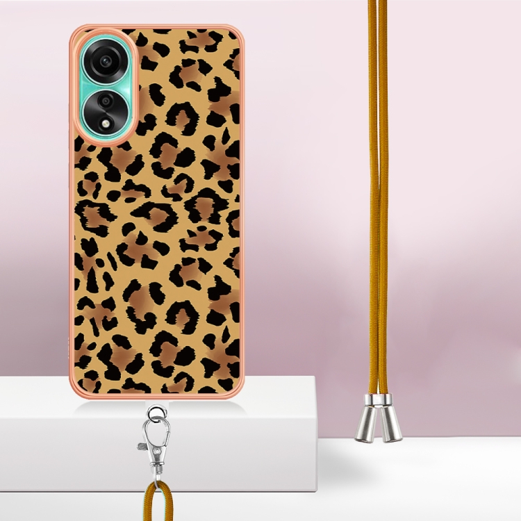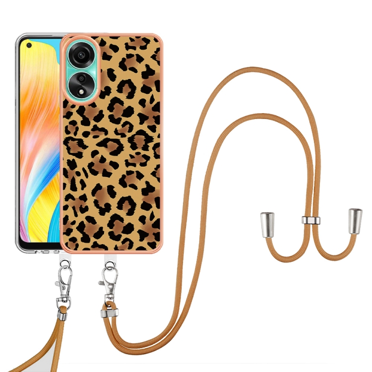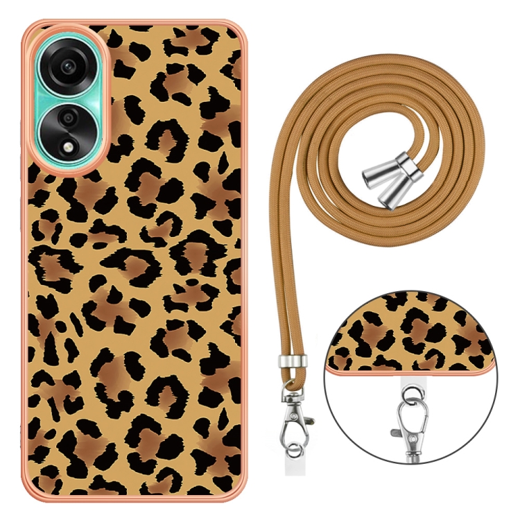 Para Oppo A78 4G Estuche para Teléfono Imd de Doble Cara con Galvanoplastia y Cordón (Estampado de Leopardo)