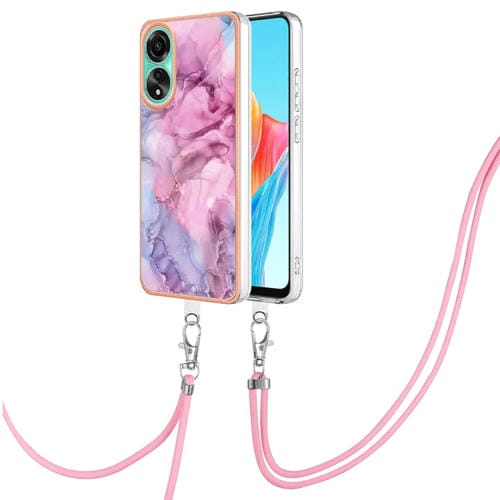 Para Oppo A78 4G Estuche para Teléfono Imd de Doble Cara de Mármol Galvanizado con Cordón (Rosa 013)