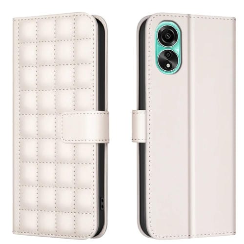 Para Oppo A78 4G Funda de Cuero con Textura Cuadrada (Beige)