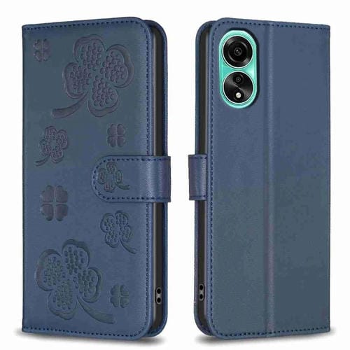 Para Oppo A78 4G Funda de Teléfono de Cuero En Relieve de Cuatro Hojas (Azul)
