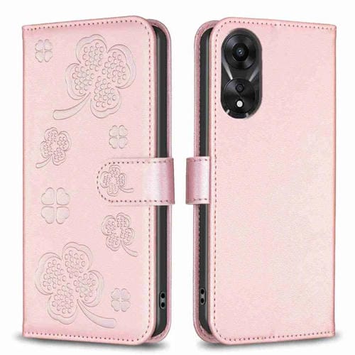 Para Oppo A78 5G Funda para Teléfono de Cuero con Relieve de Cuatro Hojas (Rosa)
