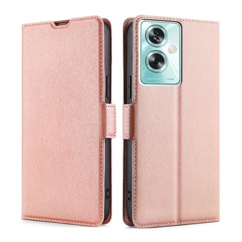 Para Oppo A79 5G Funda de Teléfono de Cuero con Tapa Horizontal con Hebilla Lateral de Voltaje Ultradelgada (Oro Rosa)