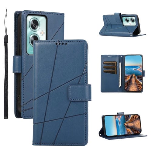 Para Oppo A79 5G Pu Funda de Teléfono con Línea En Relieve con Textura de Cuero Genuino (Azul)