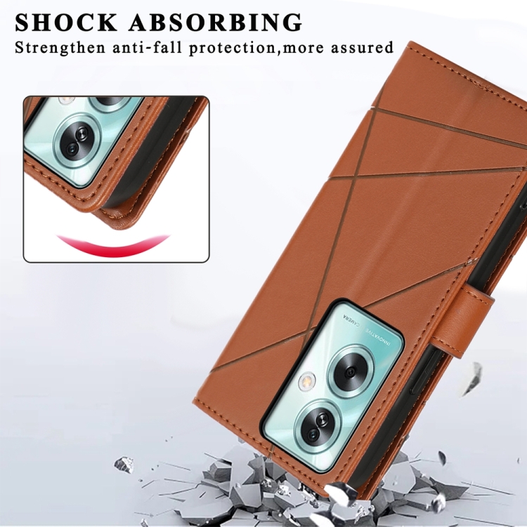 Para Oppo A79 5G Pu Funda de Teléfono con Línea En Relieve con Textura de Cuero Genuino (Marrón)