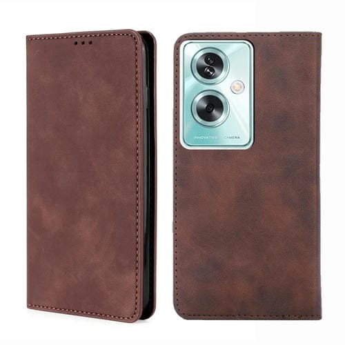 Para Oppo A79 5G Skin Feel Funda de Cuero Magnética para Teléfono (Marrón Oscuro)