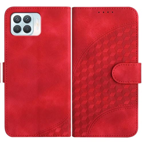 Para Oppo A93 4G / F17 Pro / Reno4 Lite / Reno4 F Yx0060 Funda de Cuero para Teléfono con Relieve y Cabeza de Elefante con Cordón (Rojo)