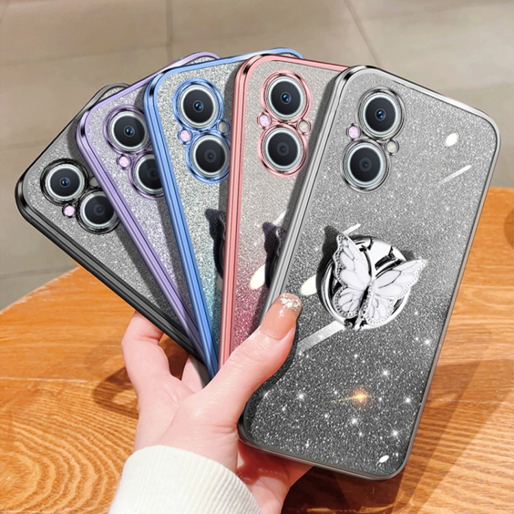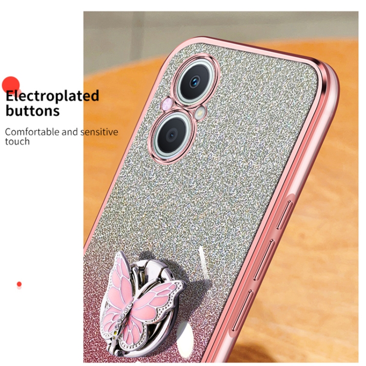 Para Oppo A96 Funda para Teléfono de TPU con Soporte de Mariposa con Brillo Degradado Plateado (Azul Sierra)
