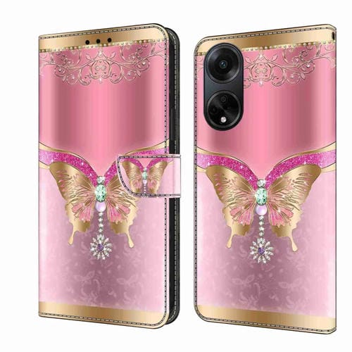 Para Oppo A98 5G Crystal 3D Funda Protectora de Cuero para Teléfono a Prueba de Golpes (Mariposa Inferior Rosa)