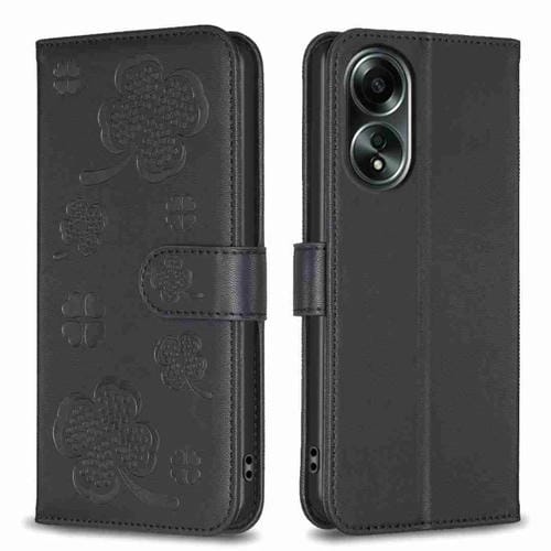 Para Oppo A98 5G Funda para Teléfono de Cuero En Relieve de Cuatro Hojas (Negro)