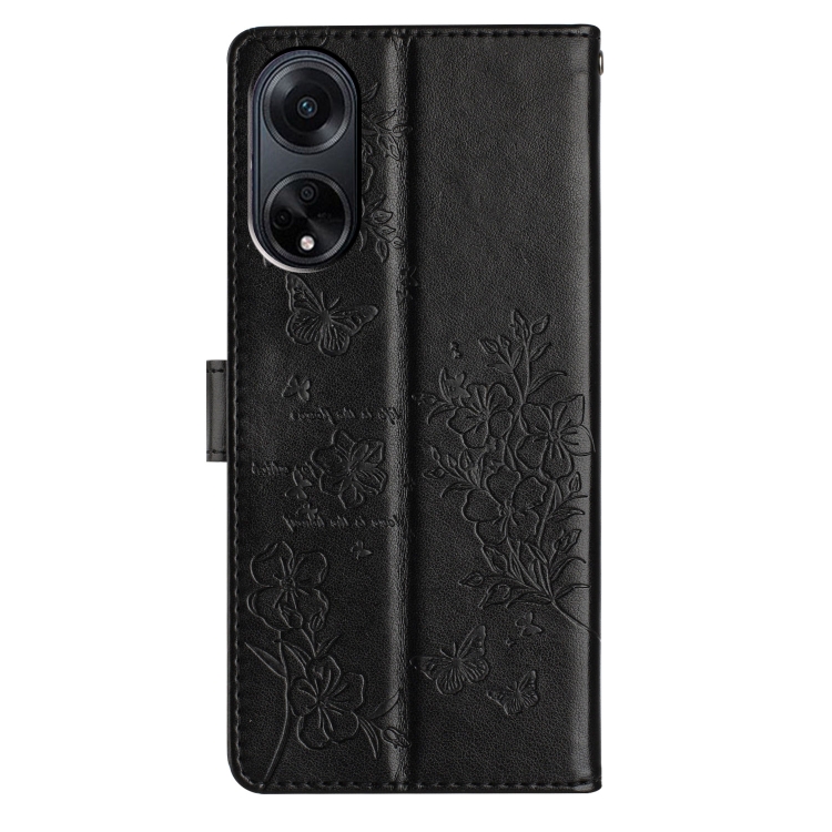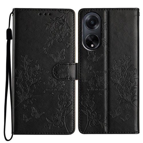 Para Oppo A98 Butterfly Love Flower Funda de Cuero para Teléfono En Relieve (Negro)