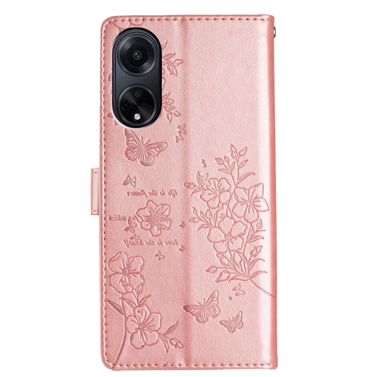 Para Oppo A98 Butterfly Love Flower Funda de Cuero para Teléfono En Relieve (Oro Rosa)