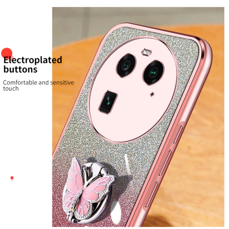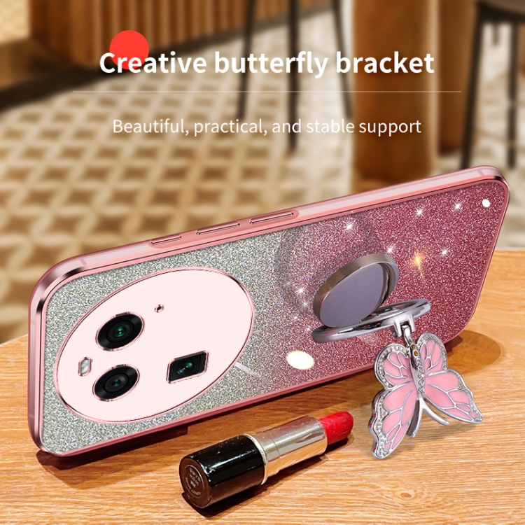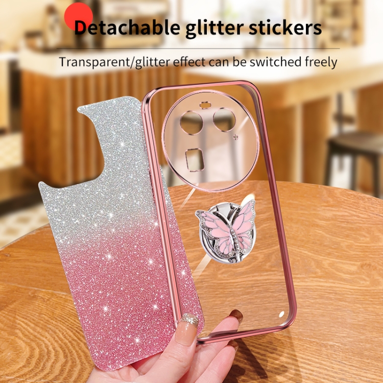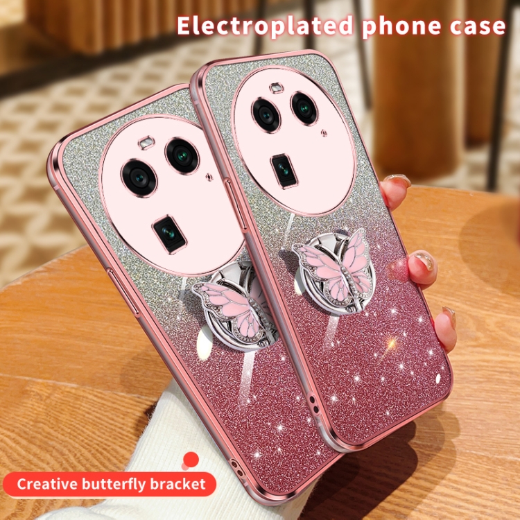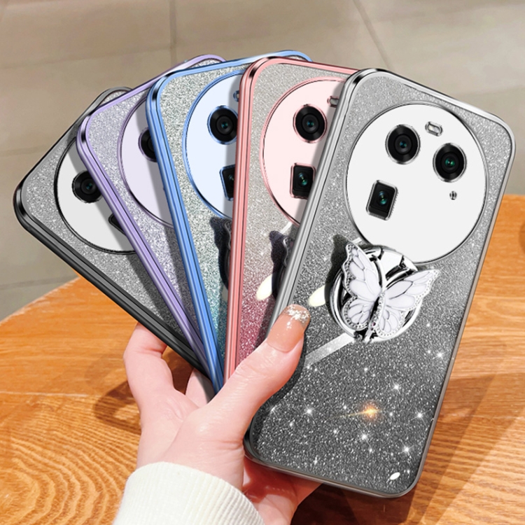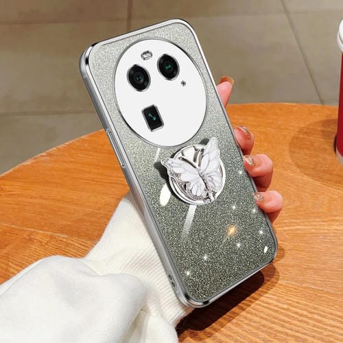Para Oppo Find X6 Funda para Teléfono de TPU con Soporte de Mariposa con Brillo Degradado Plateado (Plata)