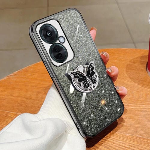 Para Oppo K11X Funda para Teléfono de TPU con Soporte de Mariposa con Brillo Degradado Plateado (Negro)