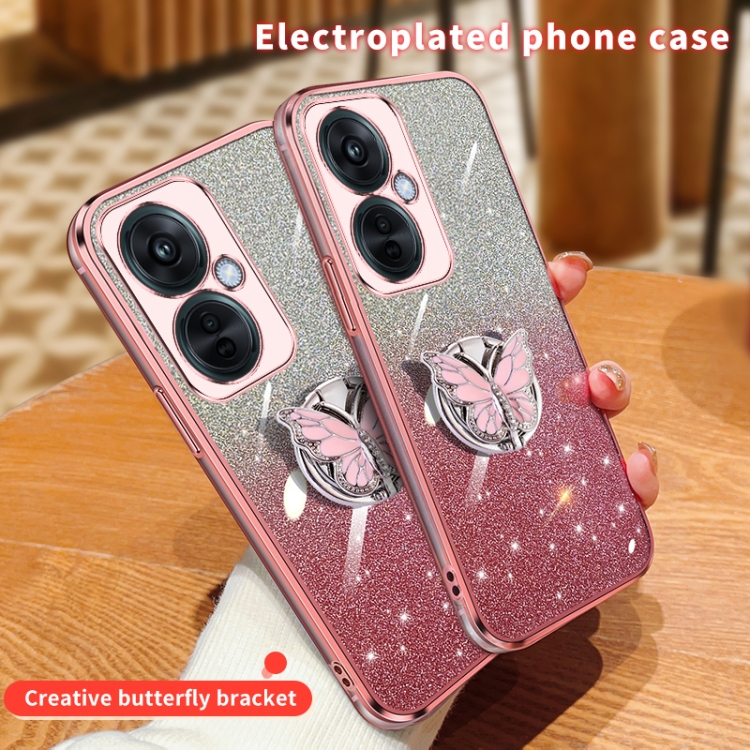 Para Oppo K11X Funda para Teléfono de TPU con Soporte de Mariposa con Brillo Degradado Plateado (Plata)