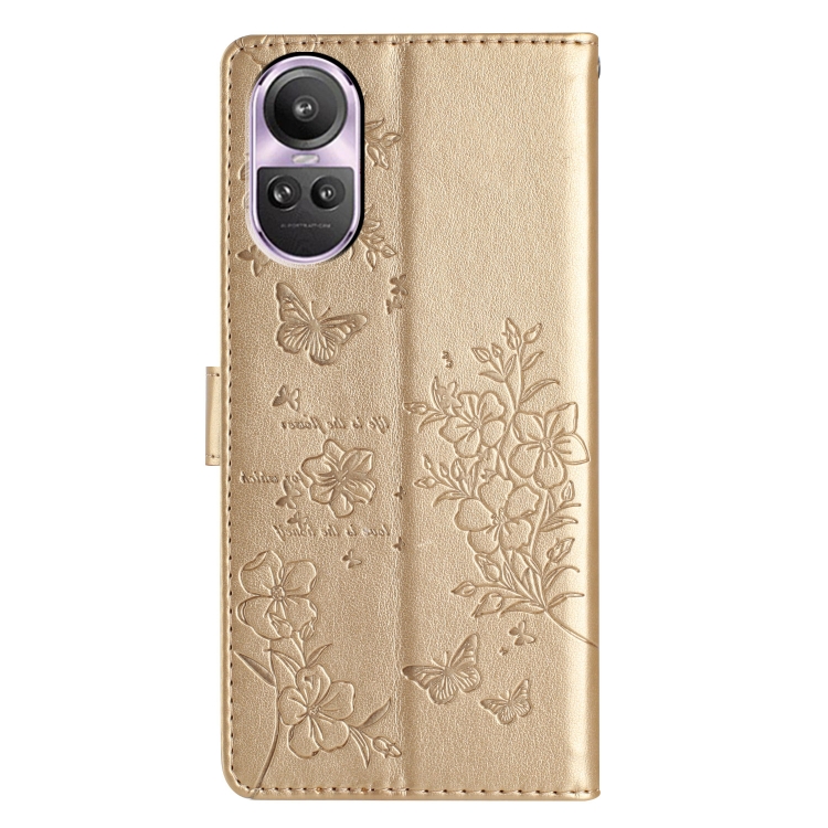 Para Oppo Reno10 / Reno10 Pro Butterfly Love Flower Funda de Cuero para Teléfono En Relieve (Oro)