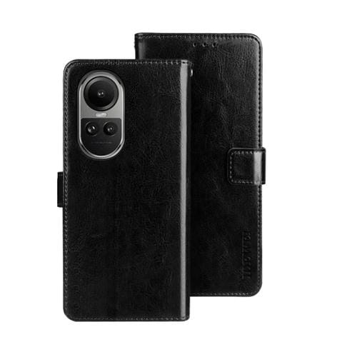 Para Oppo Reno10 / Reno10 Pro Global Idewei Crazy Horse Texture Funda de Cuero para Teléfono con Soporte (Negro)