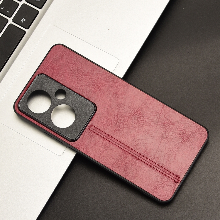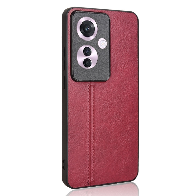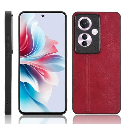 Para Oppo Reno11 a Versión Jp Patrón de Vaca Coser Contraportada Funda para Teléfono (Rojo)