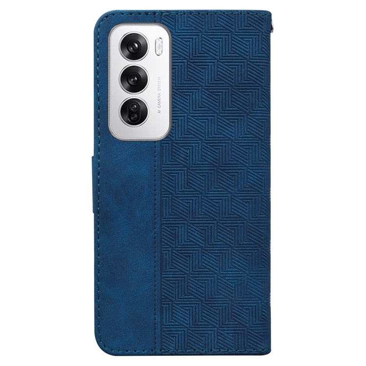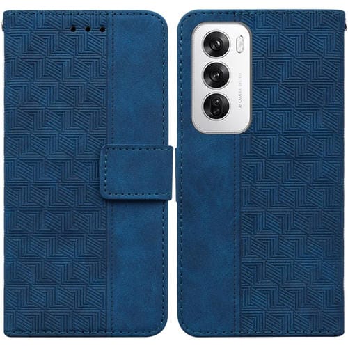Para Oppo Reno12 5G Funda de Teléfono de Cuero con Relieve Geométrico Global (Azul)