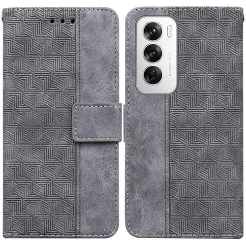 Para Oppo Reno12 5G Funda de Teléfono de Cuero con Relieve Geométrico Global (Gris)