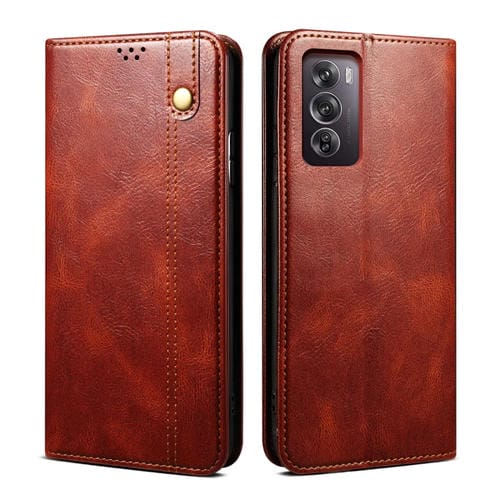 Para Oppo Reno12 5G Global Oil Wax Crazy Horse Texture Funda de Cuero para Teléfono (Marrón)