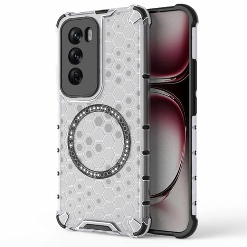 Para Oppo Reno12 Global Honeycomb Magnetic Ring Funda para Teléfono a Prueba de Golpes (Blanco)