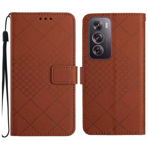 Para Oppo Reno12 Pro 5G Funda de Cuero para Teléfono con Textura de Rejilla Rómbica Global (Marrón)