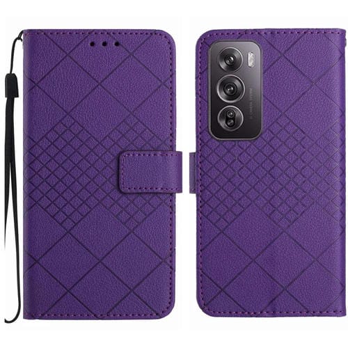 Para Oppo Reno12 Pro 5G Funda de Cuero para Teléfono con Textura de Rejilla Rómbica Global (Púrpura)