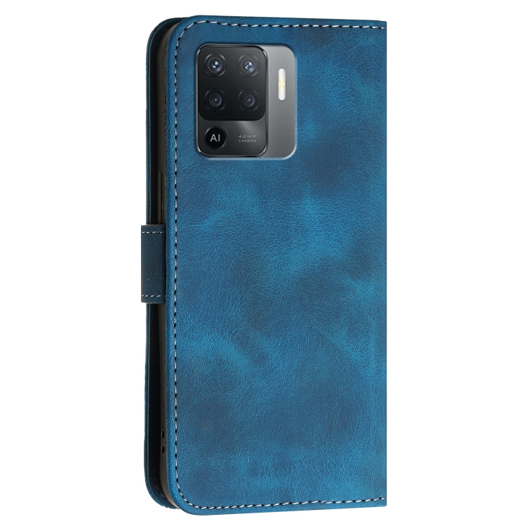 Para Oppo Reno5 F 4G / Reno5 Lite Yx0080 Grid Butterfly Patrón En Relieve Funda de Cuero con Tapa para Teléfono con Cordón (Azul Oscuro)