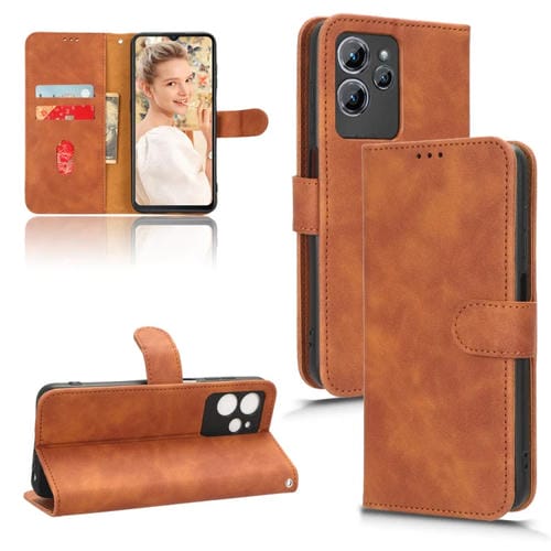 Funda de Cuero Flip Magnética para Oukitel C32 Skin Feel (Marrón)