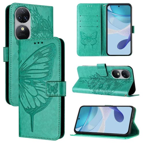 Funda de Cuero para Oukitel C38 con Mariposa en Relieve (Verde)