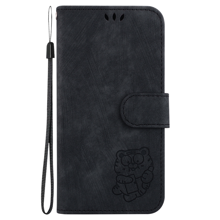 Para Redmi 13 4G Funda de Cuero con Relieve Little Tiger (Negro)