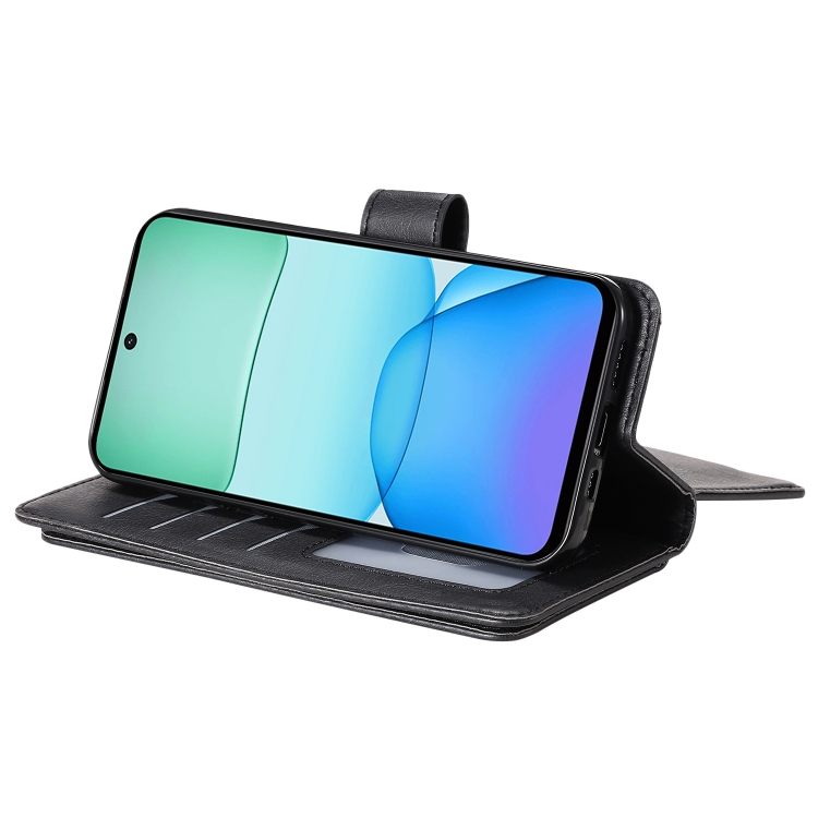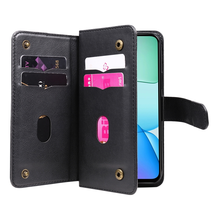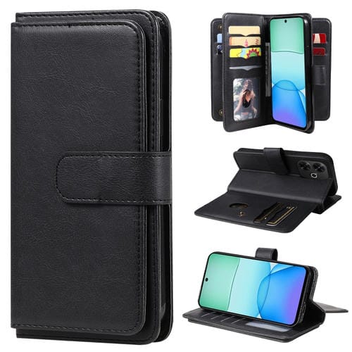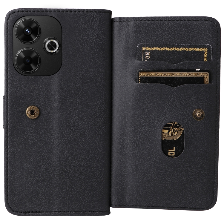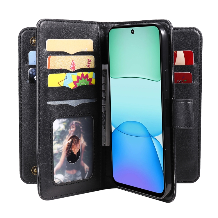 Para Redmi 13 4G Global Cartera Multifunción con 10 Ranuras para Tarjetas Funda de Cuero para Teléfono (Negro)