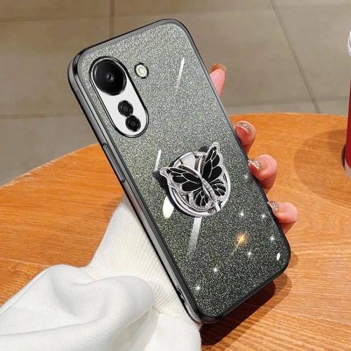 Para Redmi 13C Estuche para Teléfono de TPU con Soporte de Mariposa con Brillo Degradado Plateado (Negro)