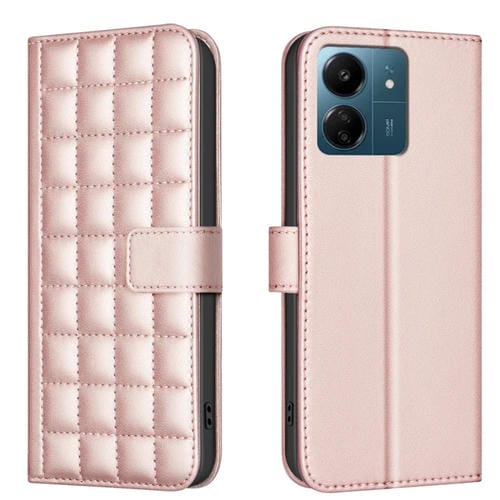 Para Redmi 13C Funda de Cuero con Textura Cuadrada (Oro Rosa)