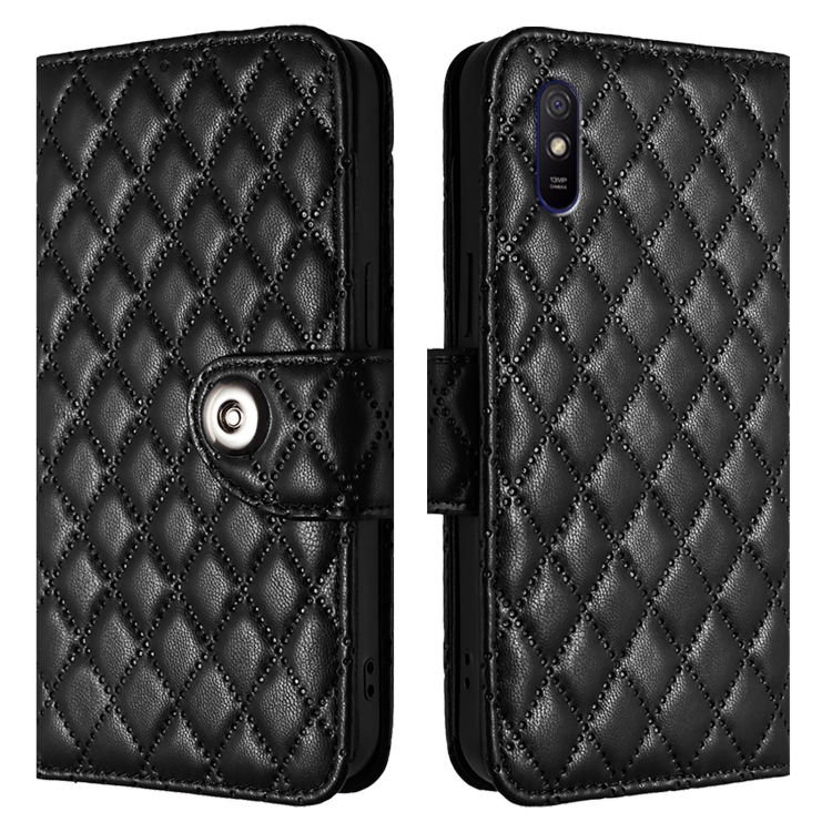 Para Redmi 9A / 9I / 9At Funda para Teléfono con Tapa de Cuero con Textura Rómbica y Cordón (Negro)