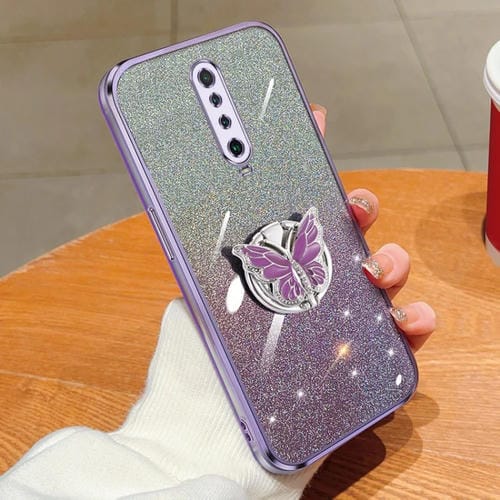 Para Redmi K30 Funda para Teléfono de TPU con Soporte de Mariposa con Brillo Degradado Plateado (Púrpura)