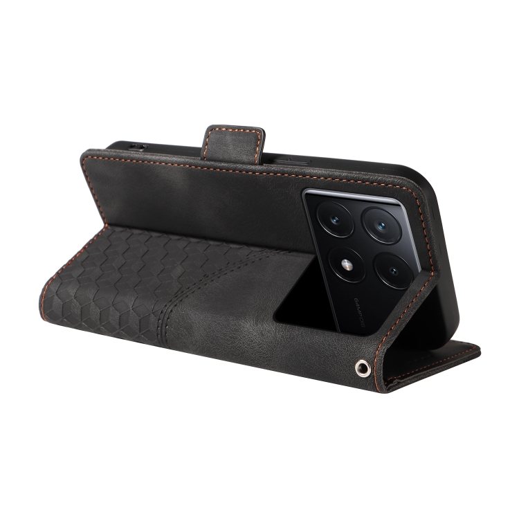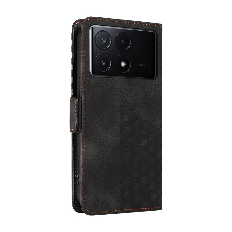 Para Redmi K70E 5G Funda para Teléfono de Cuero Estrellado con Rombos En Relieve (Negro)