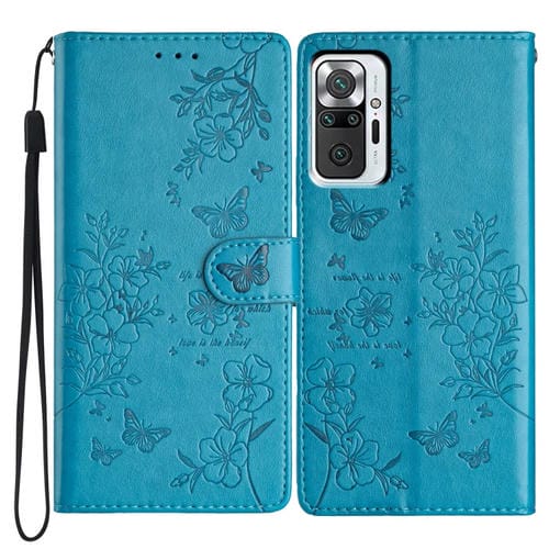 Para Redmi Note 10 Pro Max Funda de Cuero para Teléfono con Mariposas y Flores (Azul)