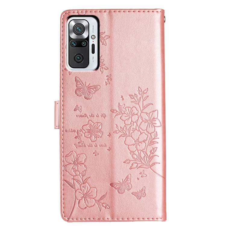 Para Redmi Note 10 Pro Max Funda de Cuero para Teléfono con Mariposas y Flores (Oro Rosa)