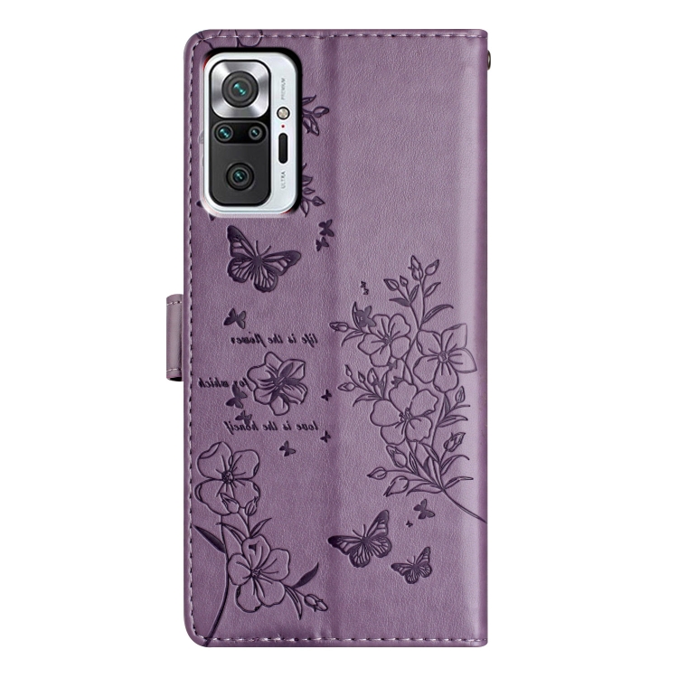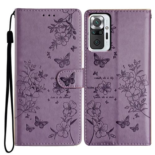 Para Redmi Note 10 Pro Max Funda de Cuero para Teléfono con Mariposas y Flores (Púrpura)