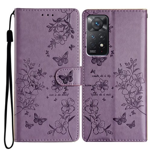 Para Redmi Note 11 Pro 5G Funda de Cuero para Teléfono con Mariposas y Flores Globales (Púrpura)