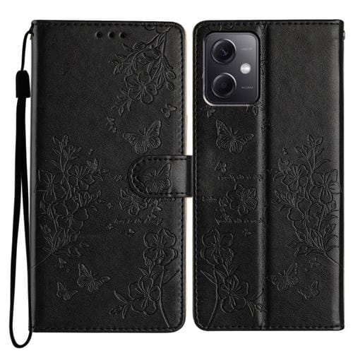 Para Redmi Note 12 5G Funda de Cuero para Teléfono con Mariposas y Flores Globales (Negro)