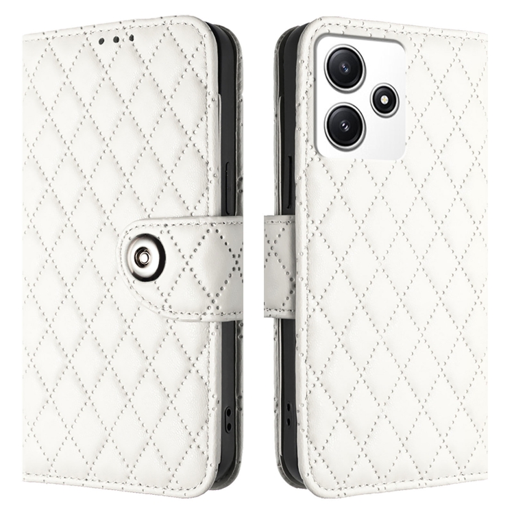 Para Redmi Note 12R Funda de Cuero con Tapa con Textura Rómbica y Cordón (Blanco)