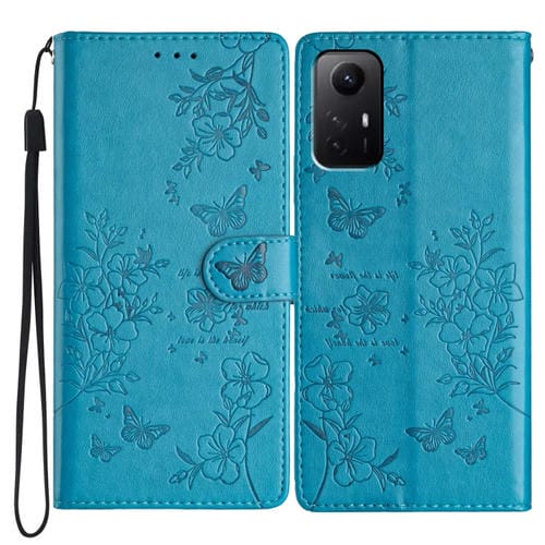Para Redmi Note 12S Funda de Cuero para Teléfono con Mariposas y Flores (Azul)