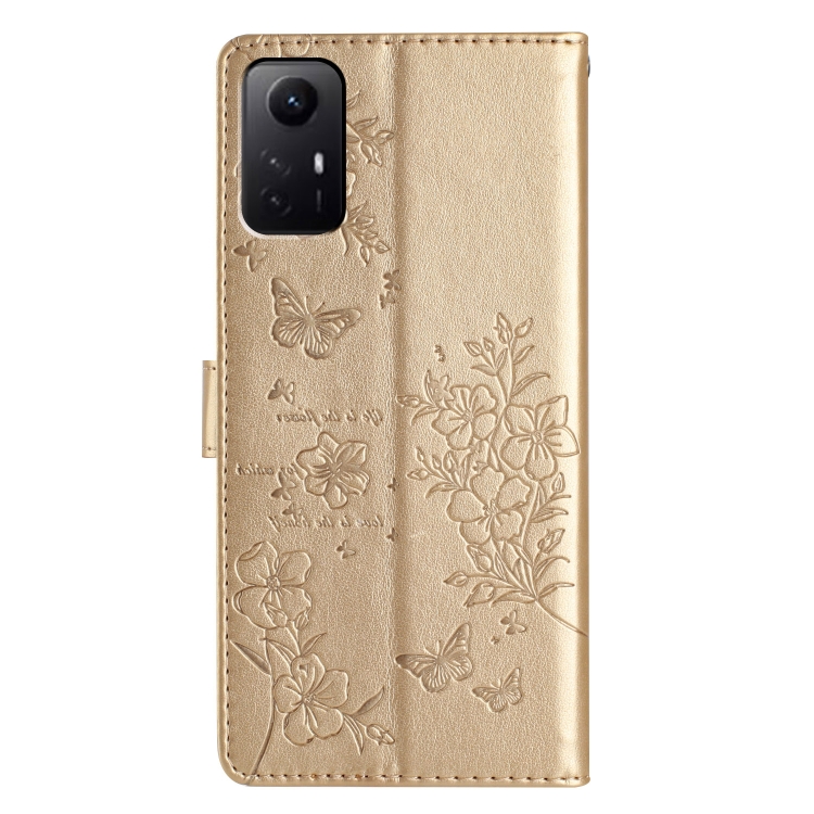Para Redmi Note 12S Funda de Cuero para Teléfono con Mariposas y Flores (Dorado)